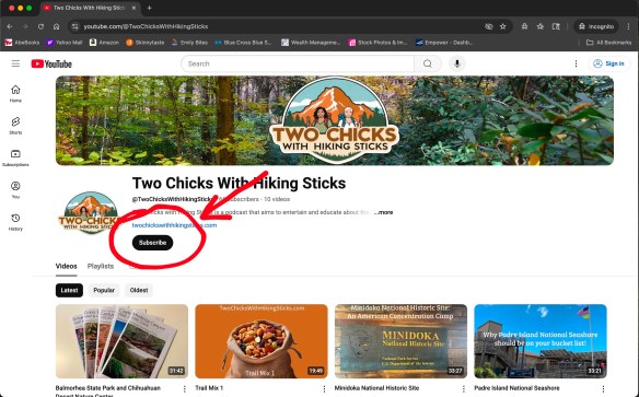 Our YouTube Channel address is https://www.youtube.com/@TwoChicksWithHikingSticks
